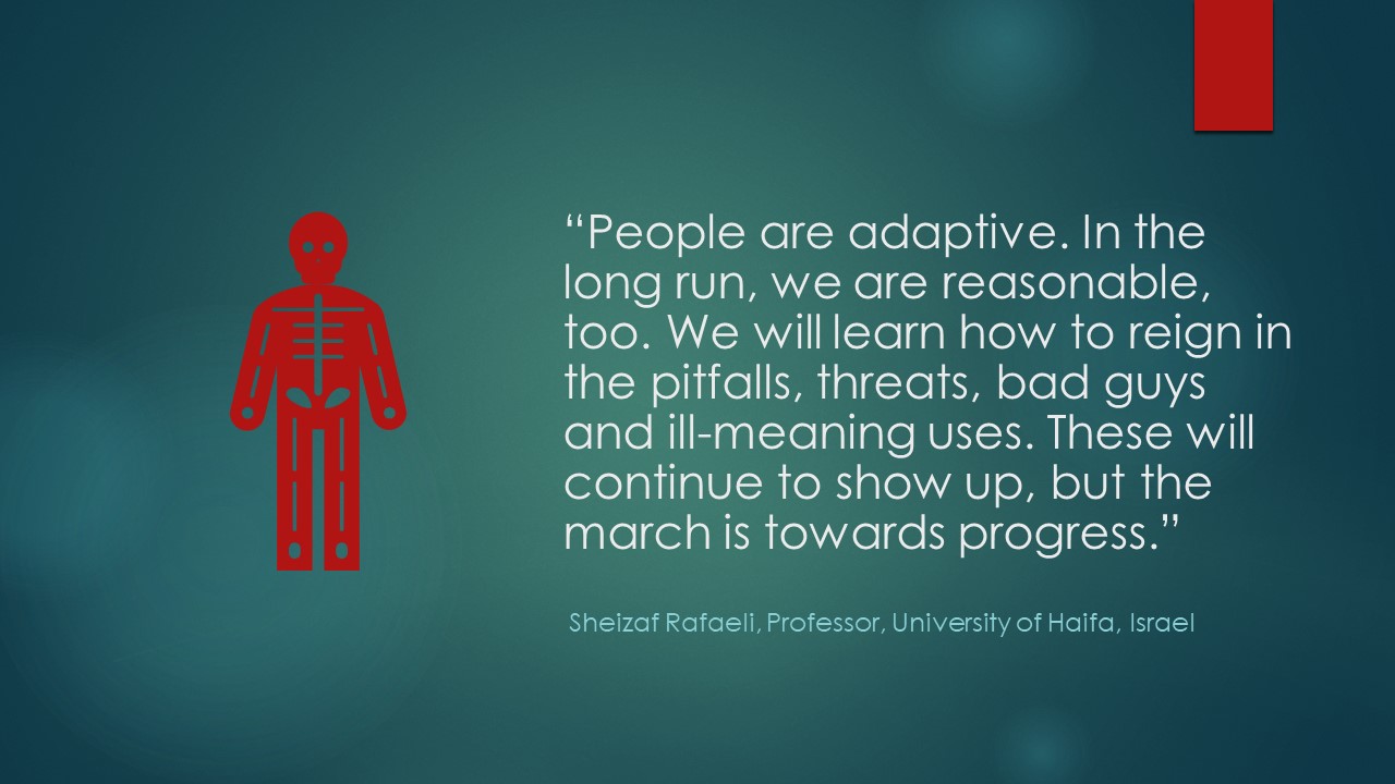 I’m sure now you’ve rolled your eyes (“Ok, Boomer”), but my goal isn’t to indicate that advancement in tech is terrible; instead – how can we improve? We need to reimagine systems that center human elements in the new emerging tech areas. (AI, machine learning, VR, augmented reality, mixed reality). As AI is is further developed it will insinuate itself deeply into our lives and this may change how loving or friendly or kind we are. For example, a Yale experiment had a robot helping lay down railroad tracks in a virtual world. The robot would apologize when he was clumsy or made a mistake. Compared with a control group (that had just a bland-replying robot) the entire group was more consoling, comforting, and interacted better with each other. Also, in another experiment 4000 humans were divided into social network groups and given a simple color chart task. Bots were added to the mix unbeknownst to the humans. The groups with mistake-prone bots consistently outperformed groups that had bots. So while we use machines to be more agile, functional, productive, and increase accuracy, as AI emerges, we’re seeing research that humans prefer (and interact better) with flawed machines. And what are humans, but flawed machines. Another way we can improve is through regulation. We need more standards, codes of conduct, guidelines, and laws. We needs ethics and integrity in tech to be part of how we move forward. And it may mean answering tough questions from from a philosophical level, like “Who owns data?” Improvements also need to be made in formal education for all ages for digital literacy – we can’t leave people behind. This improvement may mean making software more transparent and open sources. Self-driving cars will be the next significant change in the transportation industry, but we have over 3.5 million professional drivers in the US alone. Will we leave them career-less as we did our horse-drawn carriage drivers? Or our vehicle factory workers in Detroit? Or can we forecast this change and help in the transition. Lastly, we all need to recalibrate our expectations. Evolution takes time. We have evolved as interpersonal, social creatures we must re-evolve. Technology should enhance, not replace, human interactions. We should fight not to let technology crowd out or replace human interaction, but rather to augment it. Alex Beard writes in a book called Natural Born Learners, “And if the robots do take the jobs, it’s our human qualities that will count…The greatest impact of technology… may paradoxically be to push us towards the human.”